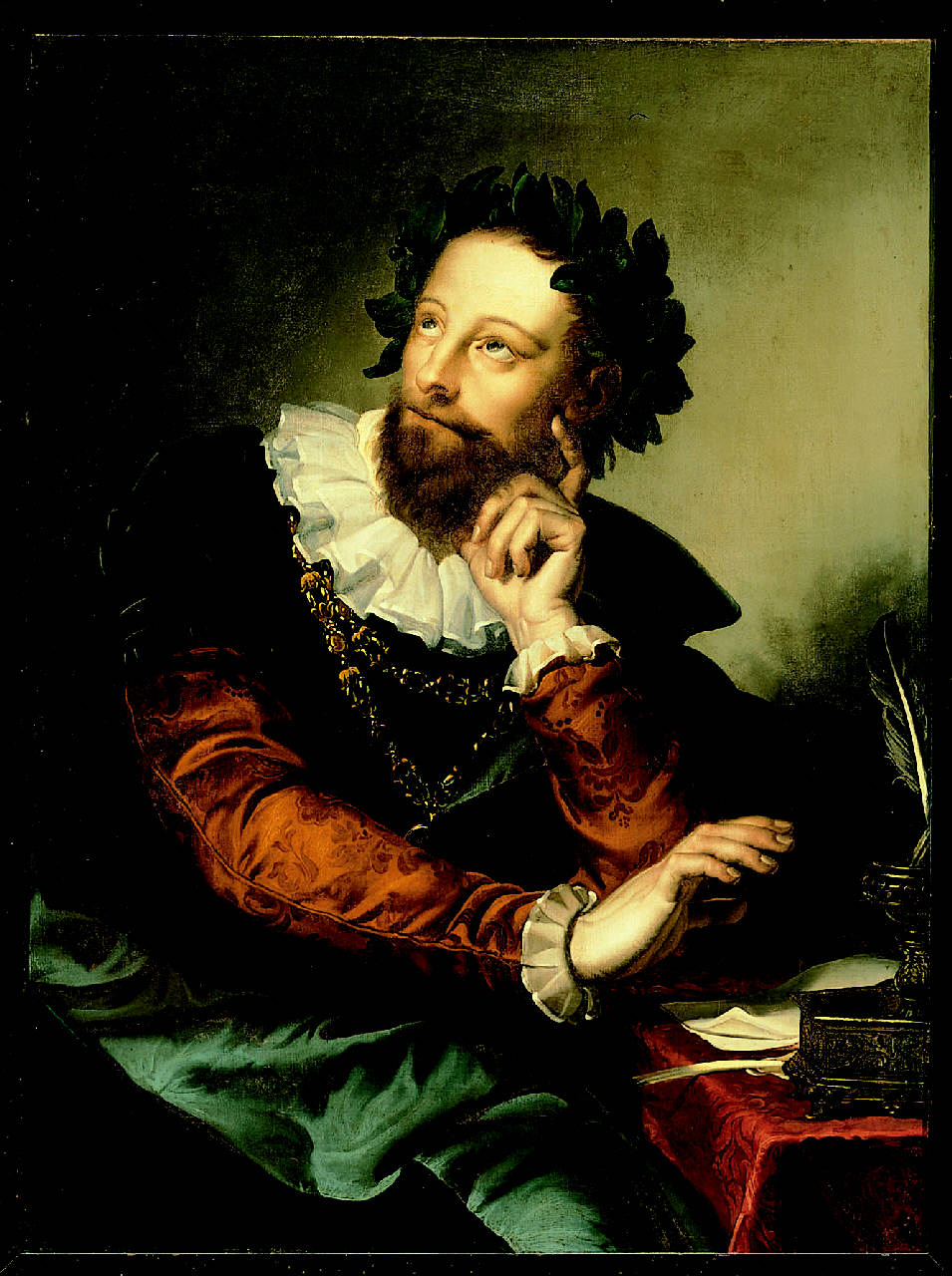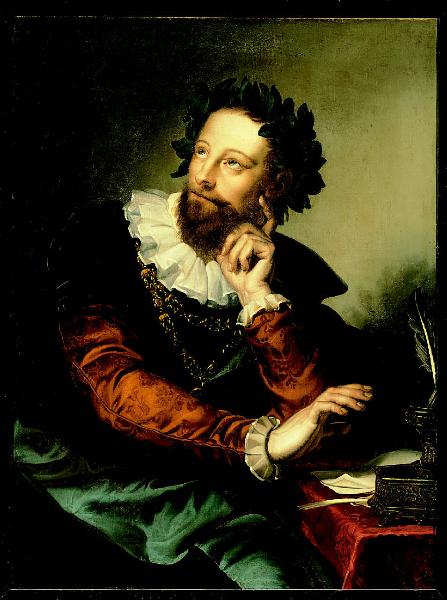 - NOTIZIE STORICO CRITICHE Il dipinto fu presentato nel 1835, certamente appena compiuto, alle mostre annuali dell'Accademia Carrara e dell'Accademia di Brera. Ebbe collocazione iniziale quale dono dell'autore, tra le tele e i marmi del patrio pantheon allestito presso l'Ateneo di Scienze Lettere e Arti di Bergamo, di cui Enrico Scuri era socio dal 1833. Il titolo originale completo era "Torquato Tasso che medita alcun poetico concetto" ("Enrico Scuri. La fine del classico nella pittura italiana dell'800", 2002).