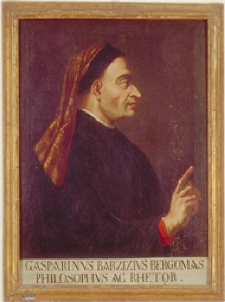 - NOTIZIE STORICO CRITICHE Commissionato a spese dell¿Ateneo di Bergamo, il dipinto raffigura l'umanista Gasparino Barzizza (Bergamo, 1360 ca .- Milano, 1430). Riconosciuto al pittore Vincenzo Angelo Orelli da R. Mangili, il ritratto venne assegnato da M. Marubbi all'ultimo decennio del Settecento prima del 1796, anno di scioglimento dell'Accademia degli Eccitati ("Patrimoni svelati", 2001). Recentemente è stato datato intorno al 1783 da G. Sangalli ("Omaggio a Vincenzo Angelo Orelli", 2001) sulla base di quanto trovato nei verbali dell'Accademia degli Eccitati (dal 1810 Ateneo di Scienze, Lettere ed Arti di Bergamo). Insieme a quello raffigurante Guiniforte Barzizza, anch'esso conservato alla Biblioteca, è con ogni probabilità da identificarsi col dipinto citato nell' "Inventario dei quadri dell'Accademia degli Eccitati" del 1797, inventario redatto a seguito delle norme francesi (cfr. L. Volpi, 1952, p. 91). Il dipinto è uno dei numerosi casi di grande corrispondenza iconografica tra i ritratti dipinti per l'Accademia degli Eccitati e quelli incisi da Pietro Michieli per conto del Calvi entro il 1664 per essere inseriti nella "Scena letteraria degli scrittori bergamaschi aperta alla curiosità de suoi concittadini". Nel caso in esame, sembra che l'Orelli si sia ispirato non all'incisione contenuta nella "Scena letteraria" ma a un modello perduto o non riconoscibile.\nCatalogo Rossi: 381/B38.