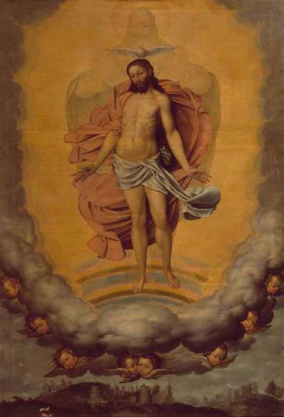 - NOTIZIE STORICO CRITICHE Già identificato come la Redenzione. La tela si trovava nella Cappella della SS. Trinità della Chiesa di S. Agostino. Anche se firmata in un piccolo cartiglio in fondo a sinistra, anticamente fu creduta del Lomazzo. Nel 1793 la tela, messa all'asta, fu comprata da Giovanni Mora per 22 lire; chi reggeva allora la città la riscattò e la tenne nel salone del Municipio. Quando il Municipio cambiò sede, fu depositata all'Accademia Carrara dove ancora si trova. Si tratta di una copia da Lorenzo Lotto databile al 1582.