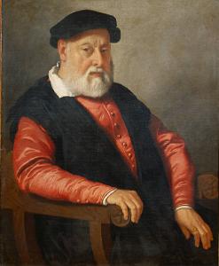 - NOTIZIE STORICO CRITICHE Proveniente dalla raccolta di Giacomo Bettami e donato agli Ospedali dal figlio Antonio nel 1779, il dipinto è in deposito all'Accademia Carrara dal 1879. Non è nota l'identità del personaggio raffigurato; non dovrebbe comunque trattarsi di un membro della famiglia Bettami dato che il dipinto, di cui si conoscono numerose copie antiche, fu probabilmente acquistato dal Bettami sul mercato antiquario bergamasco, nei primi anni del XVIII secolo. Esistono copie a Milano (Vendita Carradelli, 1897), New York ("Art News", 16.5. 1931, coll. Del Drago) e Roma (Finarte, 7/8.5.1974, n. 61, già Collezione Rota di Bergamo).