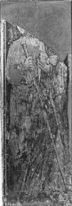 - NOTIZIE STORICO CRITICHE L'opera, depositata all'Accademia Carrara nel settembre del 1915, è stata restituita al Ubi Banca. Come indicato nella documentazione presente nell'archivio dell'Accademia Carrara, la restituzione è avvenuta nel 1989, mentre il verbale relativo risale al 1984. Insieme ai dipinti "Papa Urbano V con le teste di San Pietro e San Paolo" (restituito a Ubi Banca), "Sant'Antonio Abate" (restituito a Ubi Banca), "San Domenico" (restituito a Ubi Banca), "Cristo in pietà", "Madonna con Bambino in trono ","Sant'Anna Matterza", "Santa monaca e volto di Cristo", "Madonna del Latte" (restituito a Ubi Banca), "Madonna con Bambino in trono con angeli reggicortina" (restituito a Ubi Banca), "San Sebastiano" (restituito al Ubi Banca), "Sant'Anna Metterza e San Giacomo il Maggiore" (restituito al Ubi Banca), "Santa Maria Maddalena" (restituito al Ubi Banca), "Santa Marta e donatore" (restituito al Ubi Banca), "San Marco e Santa Elisabetta" (restituito a Ubi Banca), "Madonna con Bambino in trono, San Bartolomeo, Santo Stefano e il donatore Bertolo de' Zorli" (restituito a Ubi Banca), "Epigrafe di Bertolo de Zorli" (restituito a Ubi Banca), "San Giovanni Battista", "San Martino e monaca domenicana", fa parte del ciclo di affreschi provenienti dal Monastero di S. Marta.\nNel 1915 iniziarono i lavori relativi alla ristrutturazione del monastero di S. Marta, finanziati dalla Banca Popolare di Bergamo e seguiti dall'ing. Luigi Angelini. Il 30 aprile dello stesso anno vennero ritrovati degli affreschi nelle pareti sud-est della chiesa. I dipinti, staccati da Mauro Pelliccioli a spese della Banca, furono subito dati in deposito all'Accademia Carrara. Dall'elenco ne risultavano diciannove.\nIl ciclo di affreschi, spettante a mani diverse, è collocabile in un arco di tempo che va dal sesto al nono decennio del Trecento, benchè il nucleo più significativo sia vincolato al 1377, anno di dedicazione della chiesa, e al 1370 post, anno di morte di papa Urbano V raffigurato in uno degli affreschi. Un'iscrizione sepolcrale dipinta, recante la data 1388, è usata come punto di riferimento per la "Madonna in trono con San Bartolomeo, Santo Stefano e donatore".