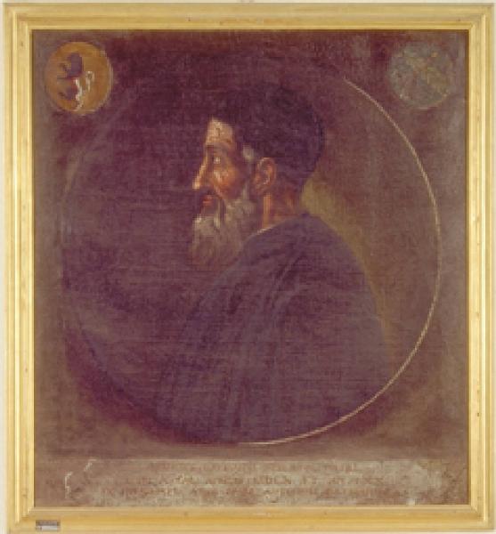 - NOTIZIE STORICO CRITICHE Donato all¿Ateneo di Bergamo dal segretario Marco Antonio Bressani, il dipinto raffigura il poeta Giovanni Bressani (Bergamo, 1489 - 1560), prolifico autore di versi in latino, italiano e bergamasco. Il ritratto è riconducibile al profilo impresso sulla medaglia coniata in onore del Bressani dopo la sua morte, conservata in Accademia Carrara.\nCatalogo Rossi: 387/B41.