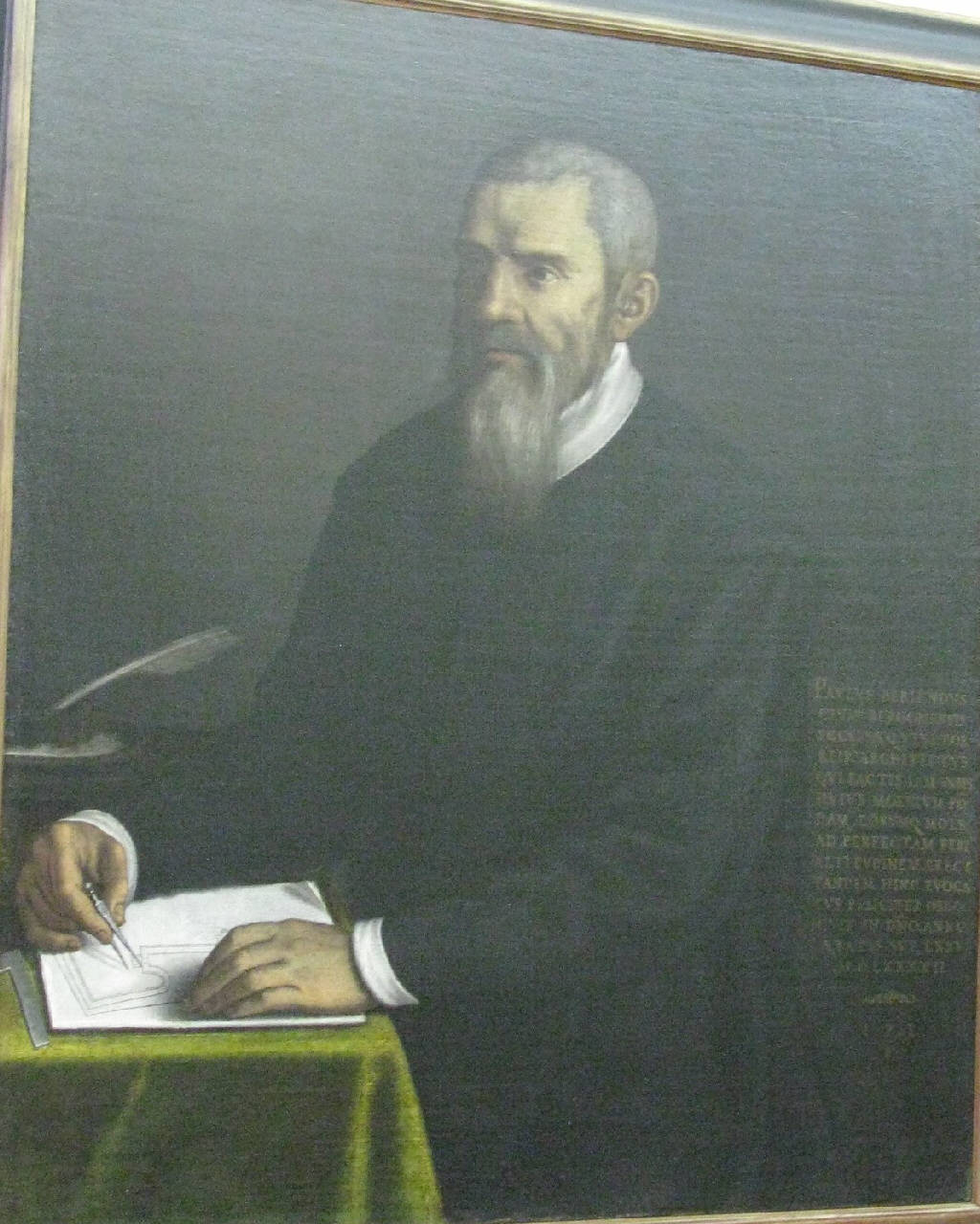 - NOTIZIE STORICO CRITICHE Il dipinto ritrae Paolo Berlendis (Endenna, 1520-Bergamo, 1592), architetto e protoingegnere nella costruzione delle Mura venete iniziate nel 1561. Secondo A. Piccinelli il ritratto era stato donato all'Ateneo di Bergamo dal Marenzi nel 1824 (l'Ateneo inzialmente era anche la sede della Biblioteca, che solo in un secondo tempo fu trasportata nel Palazzo Nuovo).\nCatalogo Rossi: 355/B20.