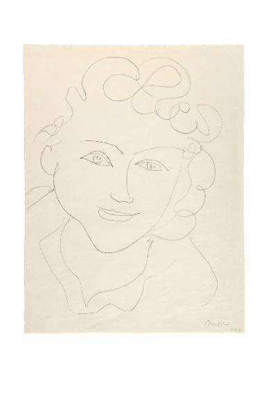 - NOTIZIE STORICO CRITICHE Il disegno fa parte della serie di opere donate nel 2017 al FAI da Clara Lavagetti, vedova di Guido Sforni, collezionista e conoscitore appassionato di arti figurative. Entrato nella collezione Sforni come "Testa di donna, Eva", il disegno sembra invece distanziarsi dalla serie di ritratti di Eva del 1948. Si potrebbe ricondurlo più genericamente a un ritratto di figura femminile. La datazione al 1946 colloca l'opera negli anni nizzardi dell'artista, in cui si è in particolare dedicato a una serie di ritratti di figure femminili. Sono gli anni in cui illustra le "Lettres portugaises" di Marianna Alcaforodo, con ritratti di religiose, e i "Visagès" di Reverdy. Sebbene non appartenente a queste serie, il disegno della collezione Sforni sembra avere delle somiglianze con un disegno di figura femminile in deposito al Musée Matisse di Cateau- Cambrésis (proprietà: Centre Pompidou), datato al dicembre 1945, dove è ritratta la contessa Margherita Beldé, con cui il volto femminile del FAI condivide una linea continua e morbida.