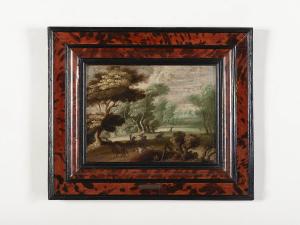 Dipinto entro cornice "fiamminga" in finta tartaruga.