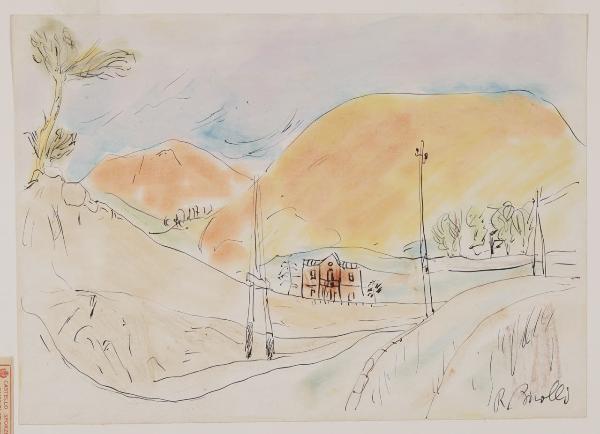 - NOTIZIE STORICO CRITICHE Renato Birolli, artista di punta dell'ambiente milanese degli anni Trenta, attraverso una deformazione di ascendenza espressionista, porta alle estreme conseguenze quel sentimento di insofferenza e di ribellione nei confronti della cultura ufficiale del periodo. Avvicinatosi a Persico e al gruppo di "Corrente", l'artista concepisce il mezzo grafico come linguaggio espressivo autonomo, capace di creare opere di immediata espressività. Inoltre, attraverso un'evanescenza fantastica del colore, Birolli coltiva il sogno utopico di una città ideale. I tre disegni (invv. 503 B 197, 504 B 198, 505 B 199), donati dall'artista nel 1933 alle Civiche Raccolte d'Arte milanesi, sono caratterizzati dagli stessi elementi formali e dalla raffigurazione di valli e sobborghi cittadini. In queste opere, attraverso l'utilizzo di arabeschi lineare d'inchiostro nero, l'artista organizza sinteticamente il piano compositivo e definisce con tratti rapidi e veloci il paesaggio. Le linee, infatti, riducono gli elementi rappresentati entro uno schema formale che tende al bidimensionale e aumenta la profondità prospettica della scena utilizzando linee veloci che percorrono lo spazio. A questi elementi è associata, inoltre, una seduzione espressiva del colore: matite colorate tracciano energicamente il foglio e assecondano gli andamenti lineari per descrivere i volumi. Immersi in un'atmosfera d'intenso stupore, questi fogli rappresentano paesaggi attraversati da strade colorate con timbri vitalistici e trasognanti.