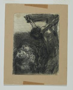 - NOTIZIE STORICO CRITICHE Della vasta produzione grafica di Gaetano Previati, si conservano all’interno del Civico Gabinetto di Disegni del Castello Sforzesco di Milano più di trecento opere su carta. Tra queste, acquistate nel 1983 dalla "Società per l’arte di Gaetano Previati" (società costituita nel 1911 con il fondo delle opere del maestro ferrarese raccolte da Grubicy), si registrano ventiquattro studi a carboncino realizzati tra l’autunno del 1901 e la primavera dell’anno successivo (inv-inv. agg. 632-655). Essi furono eseguiti dall’artista come studi preparatori per la messa in opera delle quattordici tele della "Via Crucis", oggi ai Musei Vaticani.\nSul tema della Passione di Cristo, Previati lavora a una serie di più varianti già dal 1882, quando esegue ad affresco le scene per il cimitero di Castano Primo (oggi staccati ed esposti al Museo Diocesano della città), e continua, negli anni successivi, realizzando ulteriori opere tratte dalle storie evangeliche. \nNino Barbantini, biografo di Previati, sottolinea come già dagli inizi degli anni ottanta dell’Ottocento, "le sue pitture e i suoi disegni che rappresentano i fatti della passione, formano un ciclo numeroso" e anche dopo la realizzazione degli affreschi di Castano, l’artista continua "operosissimamente a dedicare ad ogni singola stazione decine e decine di disegni [...]. Vedeva allora secondo delle composizioni tradizionali, un paese ampio, molta piccola gente, e in mezzo una piccola persona che era Gesù. Successivamente i disegni diventavano sempre più piccoli e le figure di Gesù diventavano sempre più grandi" (N. Barbantini, Gaetano Previati, Roma-Milano 1919, pp. 154-158). \nDa tale testimonianza si desumere che, seppur tra i disegni citati molteplici sono gli elementi comuni, altrettanto numerosi sono i fogli di articolata composizione spesso indipendenti dagli esiti pittorici. In alcuni esempi grafici si osservano composizioni ampie e descrittive, figure dispiegate in spazi ariosi con una sostanziale compattezza stilistica e tagli compositivi arditi. (cfr. Le opere di Gaetano Previati dell’associazione nazionale fra mutilati e invalidi di guerra, Milano 1927, tav. XXI-XXXVII; cfr. F. Bellozzi, T. Fiori, Archivi del Divisionismo, Roma 1968).\nDiverso è, invece, il caso dei ventiquattro piccoli fogli del Castello; in questi ultimi, infatti, si riscontrano chiare analogie iconografiche con le quattordici tele eseguite nei primi anni del Novecento.\nSecondo quanto sostenuto da Gianfranco Bruno, in occasione dalla loro prima esposizione nel 1983, questi fogli sono stati realizzati contemporaneamente alla serie pittorica, se non addirittura subito dopo "come piccolo ciclo destinato alla diffusione da studio". È più probabile però, vista anche la presenza di diverse varianti per alcune delle stazioni rappresentate, che i piccoli disegni abbiano accompagnato tutta la fatica di Previati per l’esecuzione delle opere, e che sia stato lo stesso Grubicy a decidere di raccogliere il meglio degli studi da taccuino, appositamente selezionati per la circolazione (Bruno 1983). \nNei ventiquattro fogli del Castello, l’artista è riuscito a comunicare un’intensità espressiva raramente raggiunta nelle sue opere pittoriche di soggetto religioso. Egli, infatti, in queste immagini raggiunge livelli di struggente e inusuale sensualità mistica. Le figure sono descritte attraverso una naturalezza degli atteggiamenti, entro i confini di uno spazio minimo e con una riduzione prospetticamente della scena che fa posto al Cristo o ai dolenti in primo piano. Inoltre, attraverso mutamenti di segno e chiaroscuro: "da un tratto violento, nervosamente sovrapposto a uno morbido e quasi dissolto in uno sfumato pulviscolare" (Fergonzi 1999), Previati riesce magistralmente a eludere i contorni e a immergere le figure in un chiaroscuro quasi trascendentale.
