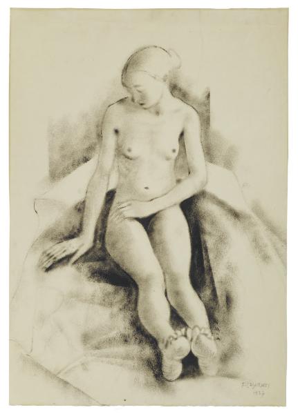 - NOTIZIE STORICO CRITICHE Nella produzione artistica di Felice Casorati il disegno occupa un ruolo non secondario. Nelle più importanti rassegne espositive a cui l'artista prese parte, infatti, sono indifferentemente presenti sia opere grafiche che pittoriche. Nel 1924, ad esempio, tra le sedici opere esposte alla Biennale di Venezia, due sono disegni; lo stesso accade nel febbraio del 1929, durante una collettiva di artisti presso la Galleria Milano, o ancora all'interno della prima sala alla Seconda Mostra del Novecento Italiano, dove partecipa con sei fogli. In queste prime due mostre del 1929, Casorati espone Lia; uno splendido nudo femminile acquistato per le collezioni pubbliche milanesi proprio durante l'esposizione organizzata da Margherita Sarfatti. L'attenzione per il nudo nelle opere di Casorati è d'altronde uno dei motivi più ripetuti e analizzati dall'artista. La giovane modella è attraversata da una malinconica solitudine ed è presentata semidistesa su un ampio panneggio soavemente chiaroscurato. La figura è descritta secondo un ideale di perfezione e pura bellezza, mediante l'uso di un tratto che risulta sfumato dalla luce, che leviga il corpo e illumina diffusamente lo spazio della scena. L'opera si può, inoltre, mettere in rapporto con i nudi femminili realizzati dall'artista nel corso degli anni Venti come "Fanciulla dormiente" (1921), "Meriggio" (1923) o "Ragazze dormienti" (1927) in cui la plasticità dei loro corpi "si impone come snodo strutturale per la percezione dello spazio evocandone la scansione prospettica in una calibrata testura compositiva" (Dallaj 1991).