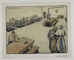 - NOTIZIE STORICO CRITICHE Daniel Fontana - allievo dell’Accademia di Brera - ha lavorato a Roma, affermandosi come illustratore caricaturista e disegnatore satirico, oltre che come pittore figurativo e di genere. Nella sua molteplice attività ha saputo rilevare i caratteri armoniosi del paesaggio lombardo e mostrare con le sue illustrazioni le gioie e le tragiche vicende umane. La sua fortuna artistica inizia con la collaborazione in diversi periodici milanesi e con la partecipazione a numerosi eventi espositivi; sua è, inoltre, la raffigurazione della "donna turrita" dell’Italia, per anni simbolo ufficiale del governo e dello Stato Italiano.\nSempre sensibile alla sofferenza dell’uomo, nel 1925 Fontana realizza un ciclo di 18 struggenti disegni (pubblicati all’interno di un album ormai di difficile reperimento); questi fogli furono donati dalla Famiglia Menighina, società di cultura milanese, alle civiche raccolte pubbliche del capoluogo lombardo, probabilmente dopo una mostra collettiva organizzata dalla società stessa nel 1928. Sono "diciotto stazioni doloranti, superstiti e ridotte, perchè il Fontana volle stroncata la sequela di maggiori miserie, che nel pensiero creativo documentano la potenza del disegnatore serrato, la intensità espressiva, il fine sociale cui l’arte deve tendere, e attanagliano, stringendo il cuore e il cervello"(Accetti 1931). Ma alla comprensione verso il prossimo, verso la sofferenza e la miseria degli ultimi, i poveri e i sofferenti, l’artista si sofferma con solerte frequenza nel corso di tutta la sua esistenza. Nel 1950, infatti, in occasione della quindicesima mostra personale milanese, Fontana presenta un’altra serie di opere sul tema della povertà, nel cui opuscolo descrive l’impegno profuso verso questo genere di tematiche :"Ho sempre seguito il mio «povero cristo» nel suo duro cammino, dalla creazione del mio affannoso «Il calvario dei vinti» (1925) all’esaltazione del suo anonimo olocausto per la difersa di un’idea e nella disperante guerra del pane contro l’oro [...]"(Daniele Fontana... 1950). In queste narrazioni grafiche, conservate oggi all’interno del Civico Gabinetto di Disegni del Castello Sforzesco, Fontana attraverso un liguaggio chiaro e persuasivo rappresentata la Milano che soffre, emarginata e ignorata nel suo dolore. Sono uomini e donne abbandonati alla più avvilente miseria morale e fisica, emaciati dalla povertà, dalla guerra e dalle tristi conseguenze della cattiva sorte. Madri dolenti con il volto che ricalca quello di un Cristo sofferente, emigrati e poveri affamati che popolano le stazioni, uomini stanchi all’interno di sale d’attesa ricolme di bagagli, seduti alle mense dei poveri e nei ricoveri notturni. A tutti loro l’artista guarda attraverso una minuziosa osservazione dal vero, che ricrea attraverso elementi espressivi che a tratti sfociano nella caricatura, senza mai minimizzare la sofferenza di quei derelitti senza pace. L’artista, attraverso una meravigliosa sintesi espressiva, riesce così a esprimere con morbidi tratti di carboncino e tenue velature di acquerello figure palpitanti di vita e di dolore.