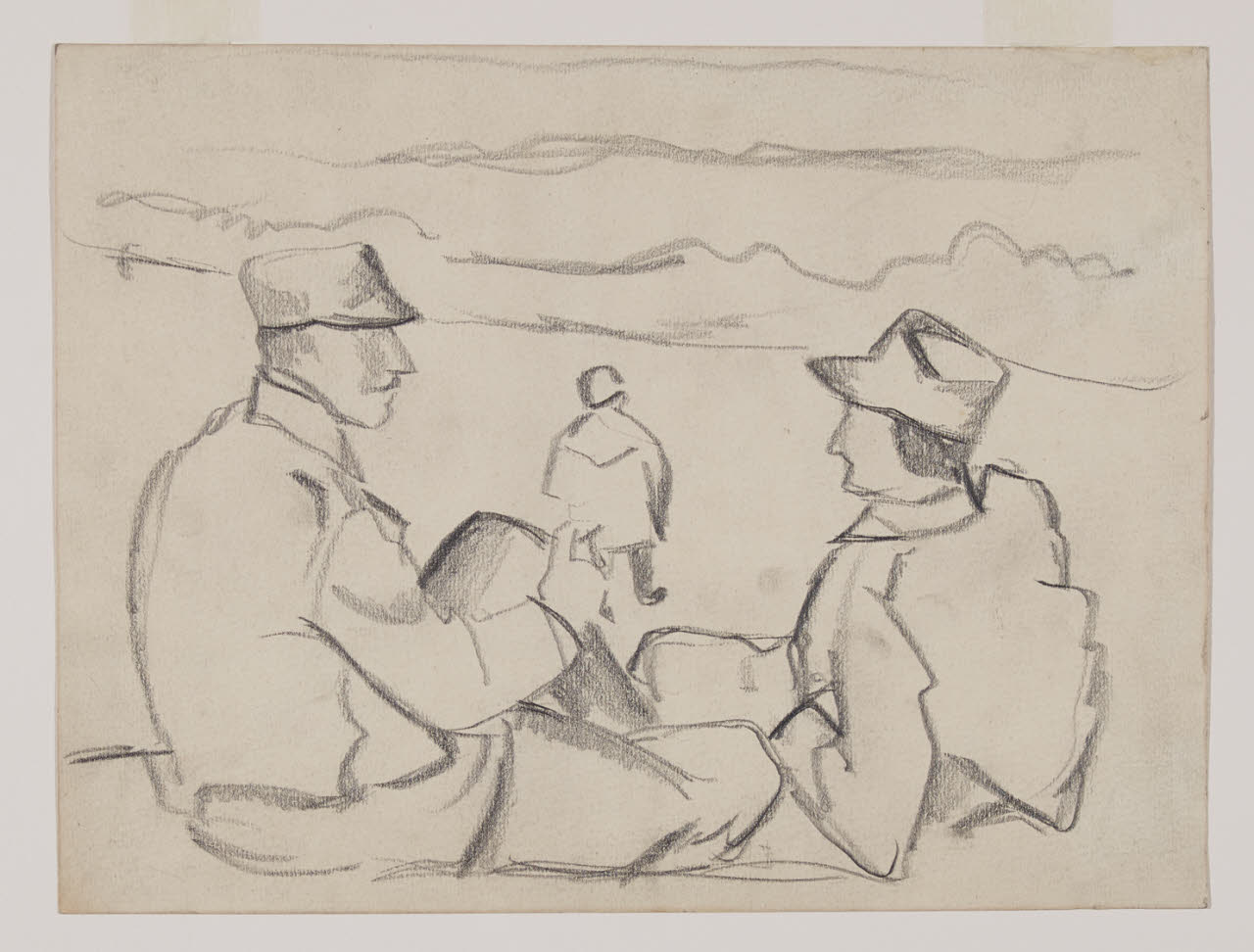 - NOTIZIE STORICO CRITICHE Allo scoppio della Prima Guerra Mondiale, molti artisti favorevoli all'intervento dell'Italia in guerra, accanto alla Francia, alla Gran Bretagna e alla Russia, si schierano nel fronte interventista arruolandosi come volontari. I futuristi di stretta osservanza, insieme a quelli indipendenti vicini al movimento che confluiranno nel gruppo di "Nuove Tentenze", furono tra i più accaniti interventisti, desiderosi di sconfiggere l'impero asburgico e ricongiungere Trento, Trieste e Gorizia alla patria. Nel maggio 1915 infatti Boccioni, Bucci, Erba, Funi, Marinetti, Piatti, Sant'Elia e Sironi entrano a far parte del Corpo Nazionale dei Volontari Ciclisti Automobilisti e partecipano alla presa di Dosso Casina. \nFuni, che in seguito combatterà come tenente dei bersaglieri sul Piave fino al 1917, fra le trincee e durante le pause dalle operazioni belliche realizza più di cinquecento schizzi a penna e inchiostro, matita e acquerelli, nei quali non descrive la visione eroica della battaglia, ma raffigura invece scene ordinarie di vita del campo militare. Di questi fogli, la maggior parte dei quali dispersi nelle operazioni di ritorno dal fronte, dodici opere (invv. 2773 B 1010; 2774 C 359; 2775 B 1011; 2776 B 1012; 2777 B 1013; 2778 B 1014; 2779 B 1015; 2780 B 1016; 2781 B 1017; 2782 B 1018; 2783 B 1019; 2783 B 1020) sono state acquistate nel marzo del 1938 dalla Galleria il Milione, presso la quale l'artista avevo esposto, nella primavera dell'anno precedente, una serie di disegni e tempere risalenti al periodo compreso tra 1911 al 1920, oltre ad alcuni cartoni colorati realizzati per gli affreschi di Ferrara e di Tripoli. È probabile pertanto che i disegni in questione furono presentati alla mostra del pittore ferrarese in quella stessa occasione, nonostante l'assenza di documenti che ne attestino l'effettiva presenza all'interno dell'esposizione. \nIn queste opere Funi non indaga l'evento tragico della guerra, le emozioni o i sentimenti dei compagni di battaglia, ma esprime il desiderio di descrivere la realtà quotidiana attraverso una formula fortemente sintetica. All'interno di trincee e baracche, le sagome dei soldati sono descritte mediante segni e linee essenziali che in alcuni casi si irrobustiscono mentre in altri si spezzano; inoltre, all'interno delle diverse composizioni le figure più abbozzate acquistano una maggiore stabilità, senso prospettico ed equilibrio compositivo nei rapporti tra forma e dimensioni. Tali fogli sono la sintesi di un percorso autonomo legato ancora alla sigla cubo-futurista che a sua volta si somma a un segno cezanniano del tutto personale. Oltre alla matita dal segno grosso e spesso interrotto, Funi crea delle composizioni con acquerelli corposi, in cui le figure si innestano all'interno del paesaggio che le circonda, diventando un tutt'uno con esse. In queste opere "non c'è differenza tra il bersagliere e la gavetta che tiene in mano; i soldati di Funi sono volti senza volto, l'emozione è nella forma, nel ritmo dei volumi, mai nell'espressione individuale" (De Stasio 1991). \nSul verso di ogni foglio è presente l'iscrizione a matita con la data e l'indicazione della scena raffigurata.