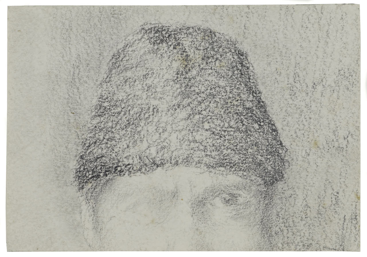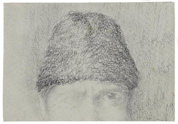 - NOTIZIE STORICO CRITICHE Vittore Grubicy de Dragon, figura tra le più influenti nella cultura artistica milanese di fine Ottocento e inizio Novecento, nel corso della sua vita è riuscito a incrementare i suoi interessi nel campo dell'arte: dalla critica militante al mecenatismo artistico. Il suo approccio al disegno e alla pittura da artista è avvenuto però in età avanzata e da autodidatta, ma nonostante ciò ci ha lasciato un gran numero di dipinti, acquerelli e disegni, la maggior parte dei quali raffiguranti paesaggi, scene campestri e ritratti di amici e fanciulle. Casi eccezionali sono, invece, due autoritratti conservati presso le raccolte del Gabinetto di Disegni del Castello Sforzesco. In uno di questi, Grubicy impiega la tecnica divisionista accostandola a una particolare ricerca dell'impaginazione all'interno di uno spazio minimo del foglio. Secondo l'interpretazione fatta da Sergio Rebora, il disegno può essere riferito alla fine del 1886, durante un soggiorno effettuato da Grubicy a Savognino, per l'affinità grafica dell'opera in questione con altri due schizzi eseguiti dall'artista in quella stessa occasione (Rebora 1995). Il tratto sgranato e irregolare del carboncino ci regala una forte espressività, evidenziando l'intensità dello sguardo, nonostante l'occhio sinistro sia solo in fase di abbozzo.