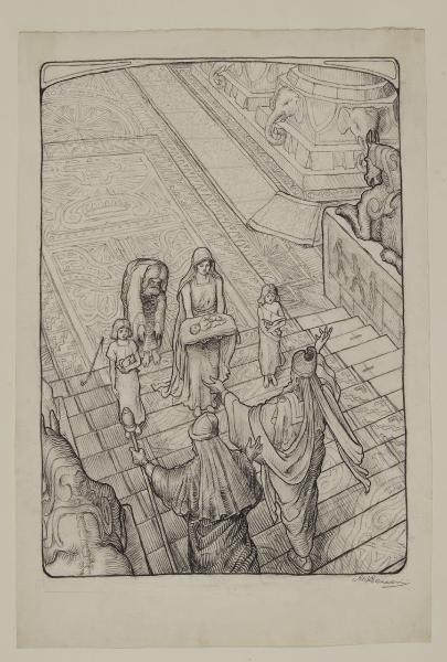- NOTIZIE STORICO CRITICHE L’opera fa parte di una serie di diciassette disegni - eseguiti a matita contè su leggera carta bianca - donati al comune di Milano dallo scrittore e critico d’arte Guido Marangoni nel 1922 e realizzati l’anno precedente dal pittore bergamasco Aldo Lazzarini. Questi fogli, oggi conservati all’interno del Civico Gabinetto di Disegni del Castello Sforzesco, illustrano alcuni episodi del Nuovo Testamento. Del loro autore scarse e frammentarie sono le notizie raccolte dalla critica fino a questo momento. L’artista, dopo aver conseguito la licenza tecnica, frequenta l’Accademia Carrara di Bergamo distinguendosi tra i più eccellenti allievi. A causa dell’obligatorio servizio di leva lascia Bergamo qualche anno, per tornarvi nuovamente nel 1921 dove frequenta la Scuola di Nudo e partecipa a diverse manifestazioni espositive sia nella propria città che a Milano e a Monza. Nel 1922 illustra tutte le copertine per le riviste di «Emporium» e dei «Lavoratori del Mare», mentre l’anno successivo, dopo il diploma, abbandona l’Italia per gli Stati Uniti, trovando fortuna come decoratore e affreschista di palazzi pubblici e privati (Enzi 1992). Nelle diciassette opere del Castello Sforzesco si osserva, oltre a una attenzione particololare per i valori cromatici e formali, una forte"capacità d’invenzione, sicurezza di segno, apprezzabili doti di illustratore, precisione di dettagli e un certo gusto per ambientazioni faraoniche"(Ivi). A queste caratteristiche si somma il gioco prospettico delle architetture, fortemente geometrizzate, visibili nei disegni de la "Visione" (inv. D159), ne "La circoncisione" (Inv. D164), ne "La strage degli innocenti" (inv. D165), in "Gesù disputa con i dottori"(inv. D167) o nella tentazione di "Gesù e Satana"(inv. D711). Enfatica, invece, è la prostazione dei Magi in visita a Betlemme (inv. D 163), raffigurati in primo piano come figure ciclopiche che fuoriescono dall’inquadratura prospettica dell’immagine. Una diversa espressività, di carattere divisionista, è riscontabile invece nei disegni "Ave" (inv. D160), nell’ "Annunciazione ai pastori", in "Gloria in excelsis deo" (inv. D162), in"Gesù nel deserto"(inv. D170) o nel "Il figliol prodigo"(inv. D175). Rispetto a questi ultimi del tutto diverso, invece, risulta l’impeto terrificante del San Giovanni Battista in "Vax clamatis in deserto" (inv. D174) o nel "Redemptio"(inv. D172), disegni quest’ultimi realizzati con arditezza di linee e di taglio compositivo. Un forte contrasto chiaroscurale è predominante nei fogli raffiguranti la "Natività"(inv. D161) o ne "Il battesimo di Cristo"(inv. D168) dove fitti tratti neri si contrappongono agli effetti luministici dati dallo sfondo bianco della carta. Elementi classicistici sono rimarcati, invece, ne "La fuga in Egitto"(inv. D 166) e in "Magnificat" (inv. D173); simbolisti nella sensuale immagine di "Salomè"(inv. D169) o nelle figure di angeli presenti in alcuni dei fogli già citati. Sono opere queste caratterizzate da una forte impostazione accademica e da un tratto netto e quasi incisorio della matita, sono disegni che risentono ancora degli influssi dell’arte lombarda di fine Ottocento, oltre che di reminiscenze preraffaellite e simboliste.