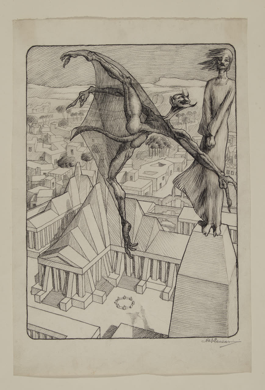 - NOTIZIE STORICO CRITICHE L’opera fa parte di una serie di diciassette disegni - eseguiti a matita contè su leggera carta bianca - donati al comune di Milano dallo scrittore e critico d’arte Guido Marangoni nel 1922 e realizzati l’anno precedente dal pittore bergamasco Aldo Lazzarini. Questi fogli, oggi conservati all’interno del Civico Gabinetto di Disegni del Castello Sforzesco, illustrano alcuni episodi del Nuovo Testamento. Del loro autore scarse e frammentarie sono le notizie raccolte dalla critica fino a questo momento. L’artista, dopo aver conseguito la licenza tecnica, frequenta l’Accademia Carrara di Bergamo distinguendosi tra i più eccellenti allievi. A causa dell’obligatorio servizio di leva lascia Bergamo qualche anno, per tornarvi nuovamente nel 1921 dove frequenta la Scuola di Nudo e partecipa a diverse manifestazioni espositive sia nella propria città che a Milano e a Monza. Nel 1922 illustra tutte le copertine per le riviste di «Emporium» e dei «Lavoratori del Mare», mentre l’anno successivo, dopo il diploma, abbandona l’Italia per gli Stati Uniti, trovando fortuna come decoratore e affreschista di palazzi pubblici e privati (Enzi 1992). Nelle diciassette opere del Castello Sforzesco si osserva, oltre a una attenzione particololare per i valori cromatici e formali, una forte"capacità d’invenzione, sicurezza di segno, apprezzabili doti di illustratore, precisione di dettagli e un certo gusto per ambientazioni faraoniche"(Ivi). A queste caratteristiche si somma il gioco prospettico delle architetture, fortemente geometrizzate, visibili nei disegni de la "Visione" (inv. D159), ne "La circoncisione" (Inv. D164), ne "La strage degli innocenti" (inv. D165), in "Gesù disputa con i dottori"(inv. D167) o nella tentazione di "Gesù e Satana"(inv. D711). Enfatica, invece, è la prostazione dei Magi in visita a Betlemme (inv. D 163), raffigurati in primo piano come figure ciclopiche che fuoriescono dall’inquadratura prospettica dell’immagine. Una diversa espressività, di carattere divisionista, è riscontabile invece nei disegni "Ave" (inv. D160), nell’ "Annunciazione ai pastori", in "Gloria in excelsis deo" (inv. D162), in"Gesù nel deserto"(inv. D170) o nel "Il figliol prodigo"(inv. D175). Rispetto a questi ultimi del tutto diverso, invece, risulta l’impeto terrificante del San Giovanni Battista in "Vax clamatis in deserto" (inv. D174) o nel "Redemptio"(inv. D172), disegni quest’ultimi realizzati con arditezza di linee e di taglio compositivo. Un forte contrasto chiaroscurale è predominante nei fogli raffiguranti la "Natività"(inv. D161) o ne "Il battesimo di Cristo"(inv. D168) dove fitti tratti neri si contrappongono agli effetti luministici dati dallo sfondo bianco della carta. Elementi classicistici sono rimarcati, invece, ne "La fuga in Egitto"(inv. D 166) e in "Magnificat" (inv. D173); simbolisti nella sensuale immagine di "Salomè"(inv. D169) o nelle figure di angeli presenti in alcuni dei fogli già citati. Sono opere queste caratterizzate da una forte impostazione accademica e da un tratto netto e quasi incisorio della matita, sono disegni che risentono ancora degli influssi dell’arte lombarda di fine Ottocento, oltre che di reminiscenze preraffaellite e simboliste.