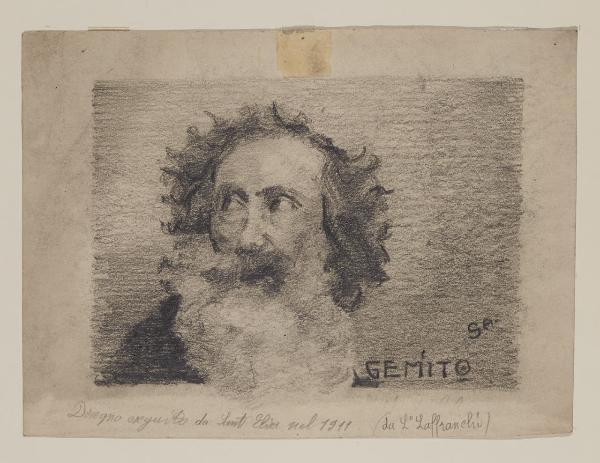 - NOTIZIE STORICO CRITICHE Conosciuto a livello internazionale più per il suo legame con il Futurismo e per i suoi progetti di architettura visionaria che per opere di altro genere, il giovanissimo Sant'Elia, nel 1911, abbandonava le lezioni dell'Accademia di Brera stringendo importanti amicizie con i massimi esponenti della cultura milanese, conosciuti tra i caffè e i salotti della città di cui l'artista era un assiduo frequentatore. Il disegno dell'architetto comasco, datato in quello stesso anno, raffigura Vincenzo Gemito e fu donato, nel 1941, da Ludovico Laffranchi alle raccolte pubbliche milanesi. Il foglio mostra un Sant'Elia inedito per un'inusuale apertura all'arte figurativa e in particolare alla ritrattista, con accenni al genere della caricatura. Nel foglio il tratto di grafite descrive l'anziano volto dello scultore napoletano; in esso l'artista crea, attraverso un marcato tratto della matita, un sapiente gioco chiaroscurale, evidenziando i tratti somatici e la fluente barba dell'effigiato.