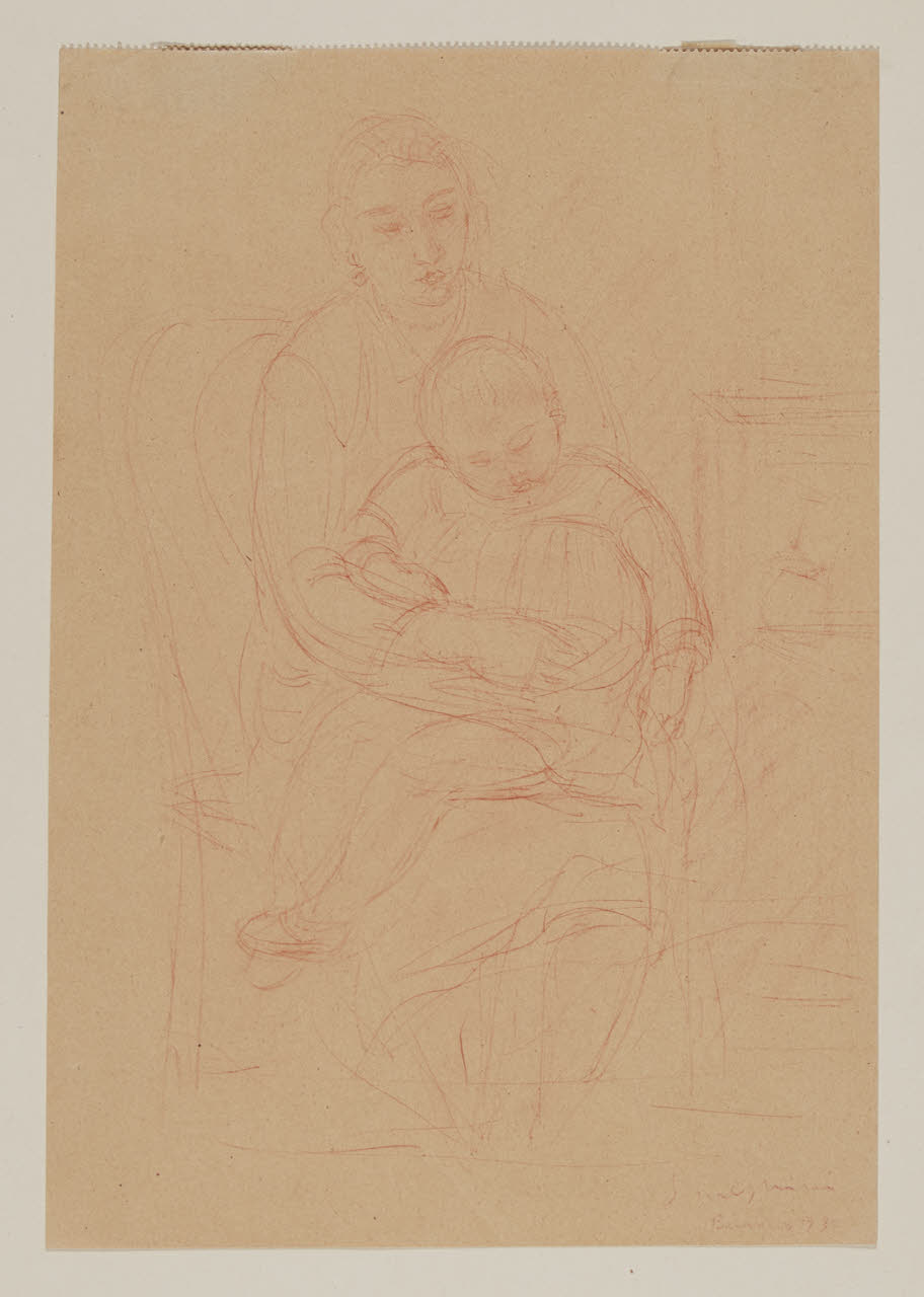 - NOTIZIE STORICO CRITICHE Dal 1930 Semeghini si sofferma maggiormente a osservare le esprerienze quotidiane della vita umana, privileggiando soggetti appartenenti alla sua patria d’adozione, l’isola di Burano, con i suoi pescatori, le sue giovani madri e le donne che lavorano al tombolo. Firmati e datati "Semeghini Burano 1930" sono due fogli (invv. 6373 B 2337, 6374 B 2338), oggi conservati all’interno del Civico Gabinetto di Disegni del Castello Sforzesco ed entrambe aquistati nel 1932 alla "Terza Mostra D’Arte del Sindacato Regionale Fascista Belle Arti di Lombardia"; esposizione, questa ultima, nella quale furono probabilmente presentati con altri "disegni colorati" dell’artista, all’interno della XII sala dedicata al "bianco e nero". Nelle due opere, Semeghini raffigura rispettivamente l’immagine di una massaia seduta mentre mostra il proprio lavoro al tombolo e la figura di un’amorevole madre che sorregge un piccolo bimbo sulle ginocchia. Le due donne, dallo sguardo smarrito, silenziosamente in posa davanti all’osservatore, sono il frutto di una ricerca personale dell’artista nei confonti dell’esistenza e del carattere umano. Avvolte all’interno di un’atmosfera silenziosa e pittoresca, attraverso un disegno essenziale, le due figure sono realizzate con leggeri tratti che ricordano le sinopie degli affreschi tanto amati dal pittore. Esse sono, infatti, descritte attraverso linee leggere e sottili che si interrompono per poi ripartire, ripetersi e sovrapponsi; tracce di pastello arancione si osservano, invece, sul volto della massaia, sulle sue labbra, sul colletto e sulla veste. Da segnalare che una variante di entrambe le opere è stata pubblicata nel 1933 all’interno di un testo dedicato all’artista: "Disegni di Pio Semeghini".