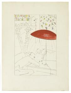 - NOTIZIE STORICO CRITICHE Trasferitosi a Milano già dalla metà degli anni Dieci con lo pseudonimo di Primo Sinòpico, l'artista sardo Raoul De Chareun firmò una serie di manifesti, vignette, caricature satiriche e una ricca varietà di illustrazioni, molte delle quali apparse in libri e periodici. Nelle sue opere Sinòpico, attraverso l'uso di pochi colori e linee geometriche spezzate, descrive la frenetica vita cittadina del suo tempo. Il foglio, acquistato nel 1933 e conservato presso le raccolte del Gabinetto di Disegni del Castello Sforzesco, né è un tipico esempio: in esso, attraverso la rappresentazione di oggetti prodotti industrialmente e divenuti, già in quegli anni, di prima necessità per la classe agiata, vi è declinata la componente massificatrice e consumistica del modernismo.\nNella composizione viene raffigurato l'interno di un bar all'americana, con le bottiglie di alcolici e tre uomini che giocano ai dadi. Evidenti sono i rimandi ai nuovi oggetti di design, come la lampada rossa di ultima generazione che illumina i tre uomini o la macchina del caffè espresso sullo sfondo, nuovi simboli di un consumismo incipiente. Nella rappresentazione delle coppie danzanti, in cui è assente ogni segno di naturalezza e grazia, vi è un'ulteriore immagine di ordine e meccanicità.\nÈ probabile che il foglio sia stato utilizzato per illustrare le pagine di uno dei tanti periodici con cui l'artista collaborava o uno dei cartelloni pubblicitari largamente diffusi dall'editoria del tempo.