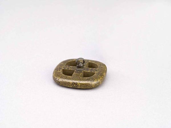 Due netsuke di forma rettangolare con angoli arrotondati, traforati. La superficie è decorata con motivi fitomorfi.