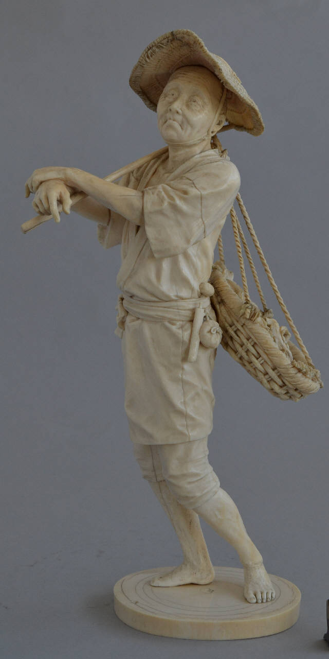 - NOTIZIE STORICO CRITICHE Si tratta di immagini di genere prodotte per il mercato occidentale, caratterizzate dalla fattura molto accurata e realistica, nello stile scultoreo appreso durante il periodo Meiji (1868-1912) in particolare dopo l'apertura della Scuola tecnica di belle arti di Tokyo (Kobu bijutsu gakkou) nel 1876 dove vennero invitati a insegnare lo scultore Vincenzo Ragusa, il pittore Antonio Fontanesi e l'Architetto Vincenzo Cappelletti. lo sguardo sereno, pacato e sorridente di uomini anziani, sovente accompagnati da bambini, è Il perfetto risultato della ricerca del "patetico" volto a soddisfare il gusto turistico occidentale.