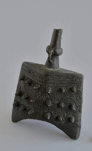 - NOTIZIE STORICO CRITICHE Campane piccole come questa erano appese entro piccole cornici a schermo ed erano oggetto di regalo. Questa è stata patinata per assomigliare a un oggetto da scavo.