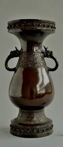 - NOTIZIE STORICO CRITICHE I decori e la forma di questo vaso riprendono in modo fedele quelli dei vasi cinesi di epoca Song e Yuan. La produzione giapponese si distingue per il colore più chiaro del metallo e soprattutto per le maggiori dimensioni. Il vaso è pesante, e molto ben eseguito. Potrebbe avere fatto parte di un set per altare da tempio. La forma del piede e della bocca con decoro di bullette è lo stesso dei vasi arcaicistici del tempio di Nikko, datati al 1643.