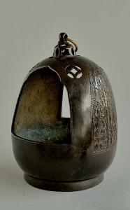 Incensiere o lanterna pensile di forma ovulare, con base schiacciata e piede anulare. L'oggetto è aperto ad arco su due lati opposti. Le due pareti risultanti sono decorate con motivi arcaicizzanti a cicala (semi/ chanwen). Superiormente quattro trafori a forma di moneta (shippomon/ qianwen) o a cerchi intersecantisi (maribasami) e al centro un pomello traforato con anello mobile.