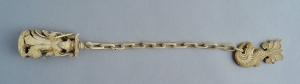 Opera facente parte di un pezzo unico con i Num. Inv. C217 e G292.\nPendente d'avorio traforato e intagliato, costituito da cinque sfere concentriche intagliate da un sol pezzo ai cui poli sono aganciati a vite a due componenti. Superiormente alle sfere si aggancia una scultura rappresentante l'immortale taoista He Xiangu con il fiore di loto nella mano sinistra, un rotolo nella destra, e al suo fianco la fenice (fenghuang). \nSopra la testa, una foglia di loto con un gancio che unisce questa sezione a una catenella alla quale è a sua volta agganciata una carpa drago (il num. inv. G292).