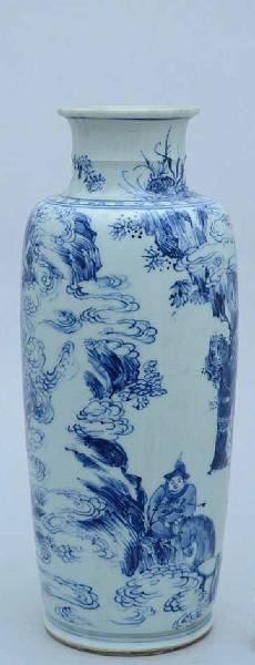 - NOTIZIE STORICO CRITICHE La tipologia ROLLWAGEN o "Vaso a manica" di forma cilindrica con lati dritti con collo leggermente svasato, tipico del periodo di transizione (1620-1683), solitamente decorato in blu cobalto sottocoperta, con scene continue. Il significato esatto di questa parola è fonte di dibattiti, addirittura ha preso corpo l'ipotesi che si tratti di un errore di battitura della parola, rollvazen, che si riferisce alla sua forma cilindrica. Tuttavia il nome rollwagen potrebbe anche riferirsi alle parole olandesi "rullo" o "rotolo", sempre in riferimento alla forma cilindrica dei vasi, che era una novità all'epoca della loto importazione in Europa. La forma potrebbe essere diventata popolare tra gli artisti di porcellana poiché si prestava bene alla riproduzione di stampe e dipinti, grazie alla grande quantità di superficie piana decorabile. (Mazzeo 2018)