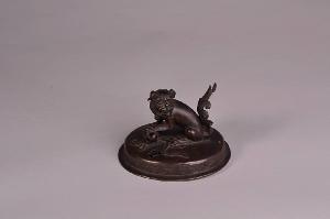 Coperchio ovale con sopra leoncino con la palla.