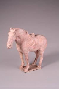- NOTIZIE STORICO CRITICHE La scheda originaria recita: "Superficie grigio avorio con tocchi rossastri, stante, sellato con la testa volta leggermente a sinistra". Ora la patina è opaca e leggermente rosata. Questo cavallo, assieme al C784, è comunque un valido esempio del realismo e della raffinatezza raggiunti sotto la dinastia Tang.