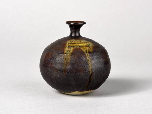 Vaso a bottiglia in porcellana ricoperto da smalto celadon marrone-giallo.