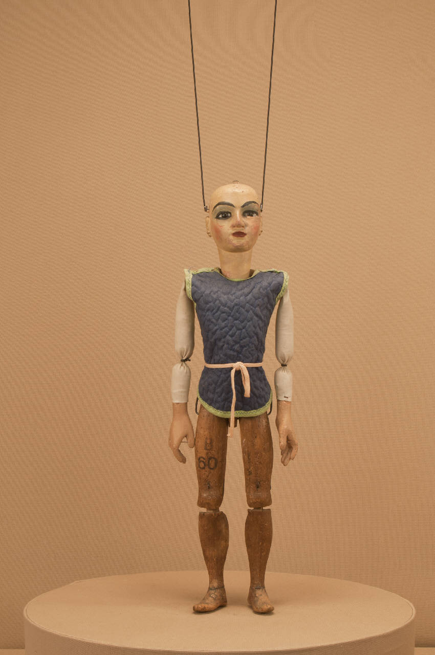 - NOTIZIE STORICO CRITICHE Spilli ai lobi delle orecchie per appendere eventuali orecchini. Il busto è rivestito da una lastrina di piombo che lo avvolge per aumentare il peso della marionetta. Forchinella sulla sommità della testa per il ferro utilizzato col sistema di movimento a pugnetto.