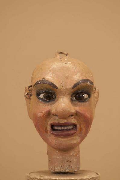 Testa in legno di tiglio, occhi di vetro dipinti da dietro.