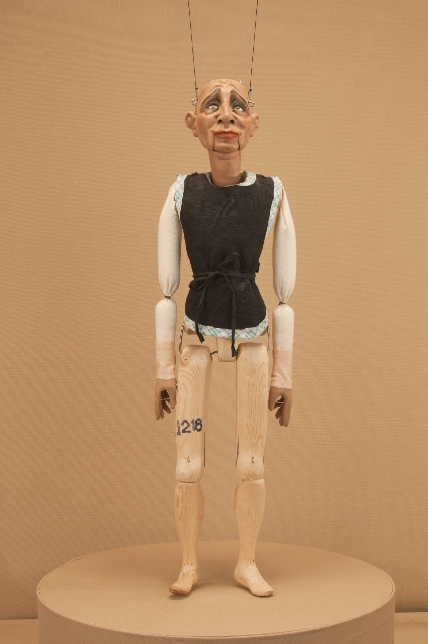 - NOTIZIE STORICO CRITICHE Marionetta realizzata per interpretare Ali Baba nel 2012. Lo spettacolo "Ali Baba" è una riduzione teatrale per marionette di Eugenio Monti Colla dalla celebre fiaba contenuta ne Le Mille e una notte.\nLa musica originale è stata scritta dal maestro Giuseppe Azzarelli.\nLo spettacolo andò in scena per la prima volta nel 2004 con le scenografie di Franco Citterio e i costumi di Cecilia Di Marco ed Eugenio Monti Colla. Questa marionetta ha anche interpretato il ruolo del Conte Anselmo ne "La Famiglia dell'antiquario" di Carlo Goldoni, andato in scena nel 2014 al Piccolo Teatro di Milano. Si tratta di una riduzione per marionette a cura di Eugenio Monti Colla e con le musiche di Antonio Salieri, le scene di Franco Citterio e i costumi di Eugenio Monti Colla e Cecilia Di Marco.
