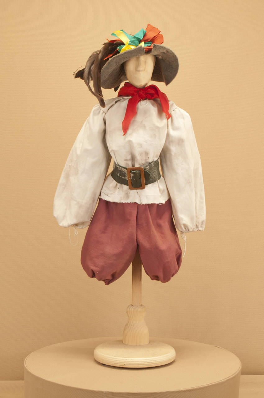 Costume da popolano di foggia seicentesca composto da calzoni, camicia, fazzoletto da collo e cintura. Si completa con un cappello che ha il codice GOR 15377.