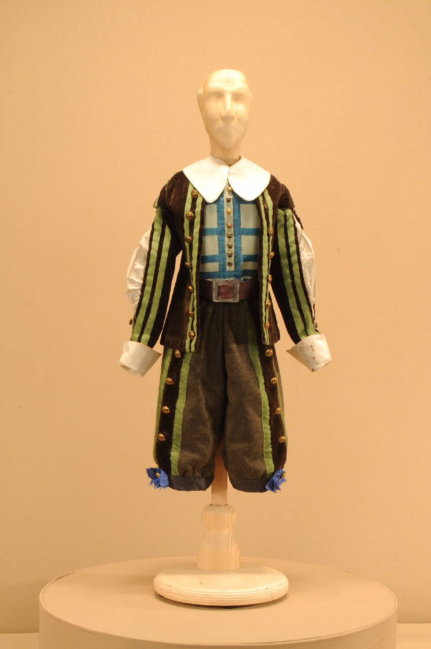 Costume da popolano di foggia seicentesca composto da calzoni, gilet, giacca, cintura e collo.