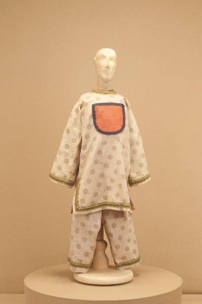 - NOTIZIE STORICO CRITICHE Il costume si completa con un paio di calzature e con un copricapo in stile. Lo spettacolo "Il drago verde" è una grandiosa azione coreografica in nove quadri messa in scena da Carlo Colla per la Compagnia Marionettistica Carlo Colla e Figli. La musica è stata composta dai maestri Strigazzi e Gualtieri e le ricchissime scene sono state dipinte da A. Lualdi e L. Mens.\nLo spettacolo, in repertorio fin dalla metà dell¿Ottocento col titolo "I riti chinesi" e indicato sui libri mastri come "Ballo I Chinesi" e sui tamburini del quotidiano "La Sera" come Drago Verde (dal 1913 al 1918), fu rielaborato per un nuovo allestimento solo nel 1948 dopo un lungo oblio e presentato nuovamente sulle scene del Teatro Gerolamo di Milano. Lo spettacolo è stato ripreso nel 1985 al Teatro dell'Arte e portato a Berlino per il Festival Horizonte.\nContrariamente a quanto il titolo farebbe pensare non si tratta di un tema fiabesco, ma di un ballo a sfondo storico sulla lotta per il potere delle dinastie imperiali. Il drago a cui si allude nel titolo è un idolo che protegge la dinastia regnante e aiuta a sconfiggere ogni tentativo di rivolta della deposta dinastia.