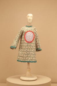 - NOTIZIE STORICO CRITICHE Il costume, composto da una sola veste, si completa con un paio di pantaloni. Lo spettacolo "Il drago verde" è una grandiosa azione coreografica in nove quadri messa in scena da Carlo Colla per la Compagnia Marionettistica Carlo Colla e Figli. La musica è stata composta dai maestri Strigazzi e Gualtieri e le ricchissime scene sono state dipinte da A. Lualdi e L. Mens.\nLo spettacolo, in repertorio fin dalla metà dell¿Ottocento col titolo "I riti chinesi" e indicato sui libri mastri come "Ballo I Chinesi" e sui tamburini del quotidiano "La Sera" come Drago Verde (dal 1913 al 1918), fu rielaborato per un nuovo allestimento solo nel 1948 dopo un lungo oblio e presentato nuovamente sulle scene del Teatro Gerolamo di Milano. Lo spettacolo è stato ripreso nel 1985 al Teatro dell'Arte e portato a Berlino per il Festival Horizonte.\nContrariamente a quanto il titolo farebbe pensare non si tratta di un tema fiabesco, ma di un ballo a sfondo storico sulla lotta per il potere delle dinastie imperiali. Il drago a cui si allude nel titolo è un idolo che protegge la dinastia regnante e aiuta a sconfiggere ogni tentativo di rivolta della deposta dinastia.