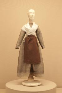 Costume da popolana di foggia seicentesca composto da veste, grembiule e fazzoletto da collo.