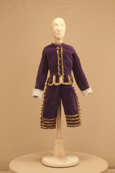 Costume da nobiluomo di foggia seicentesca composto da calzoni e giacca.