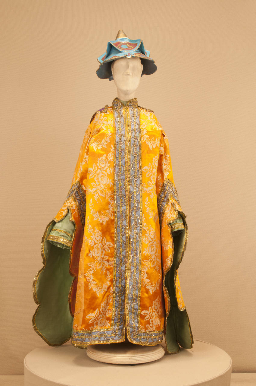 Costume fantastico da religioso cinese composto da veste, sopravveste e dalmatica. Il cappello che completa il costume ha il codice C 08111.