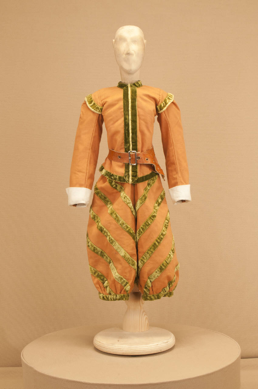 Costume per militare di foggia seicentesca composto da calzoni, giacca e cintura con portaspada.
