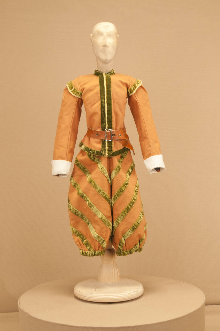 Costume per militare di foggia seicentesca composto da calzoni, giacca e cintura con portaspada.
