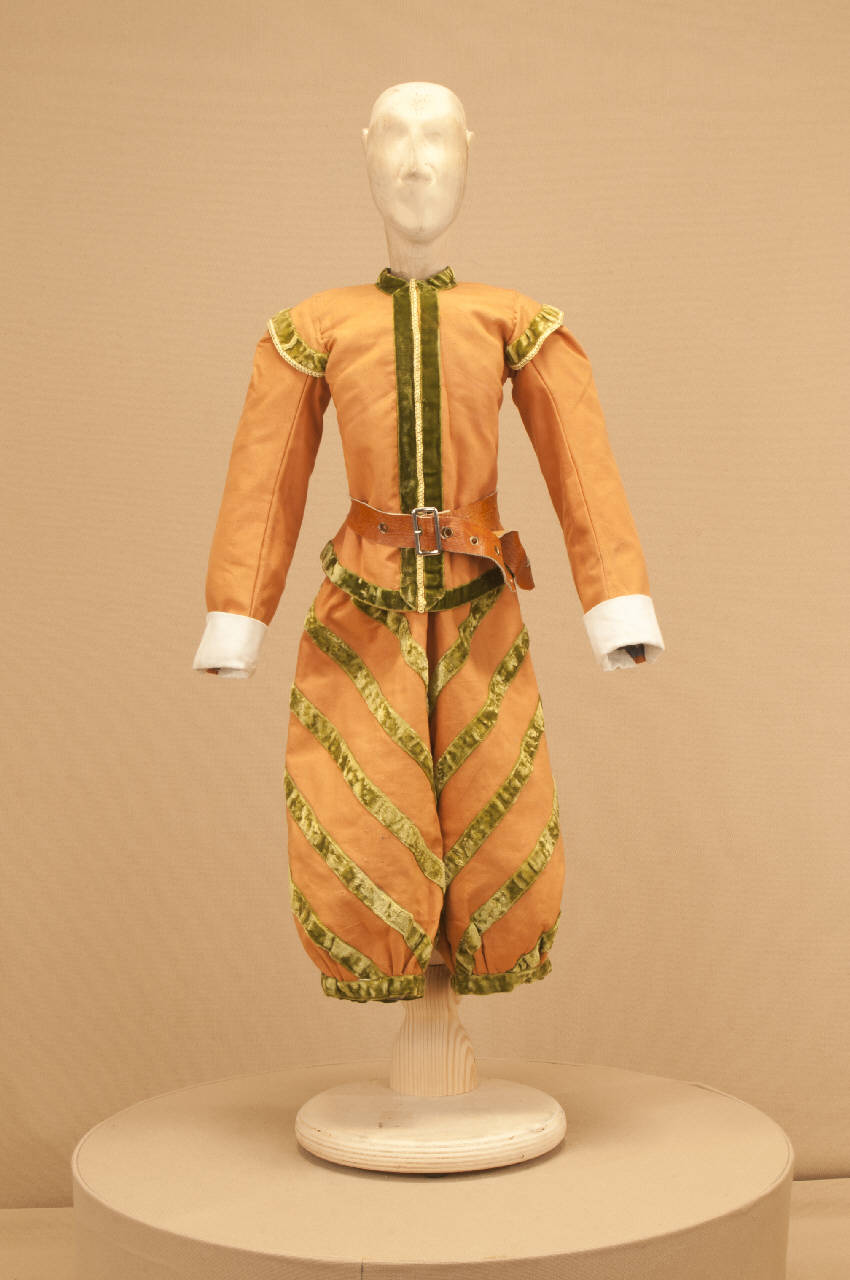 Costume per militare di foggia seicentesca composto da calzoni, giacca e cintura con portaspada.