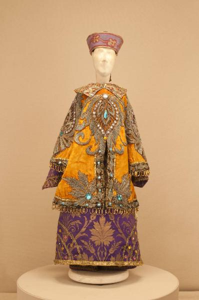 - NOTIZIE STORICO CRITICHE Il costume si completa con un paio di calzature in stile. Lo spettacolo "Il drago verde"è una grandiosa azione coreografica in nove quadri messa in scena da Carlo Colla per la Compagnia Marionettistica Carlo Colla e Figli. La musica è stata composta dai maestri Strigazzi e Gualtieri e le ricchissime scene sono state dipinte da A. Lualdi e L. Mens.\nLo spettacolo, in repertorio fin dalla metà dell¿Ottocento col titolo "I riti chinesi" e indicato sui libri mastri come "Ballo I Chinesi" e sui tamburini del quotidiano "La Sera" come Drago Verde (dal 1913 al 1918), fu rielaborato per un nuovo allestimento solo nel 1948 dopo un lungo oblio e presentato nuovamente sulle scene del Teatro Gerolamo di Milano. Lo spettacolo è stato ripreso nel 1985 al Teatro dell'Arte e portato a Berlino per il Festival Horizonte.\nContrariamente a quanto il titolo farebbe pensare non si tratta di un tema fiabesco, ma di un ballo a sfondo storico sulla lotta per il potere delle dinastie imperiali. Il drago a cui si allude nel titolo è un idolo che protegge la dinastia regnante e aiuta a sconfiggere ogni tentativo di rivolta della deposta dinastia.