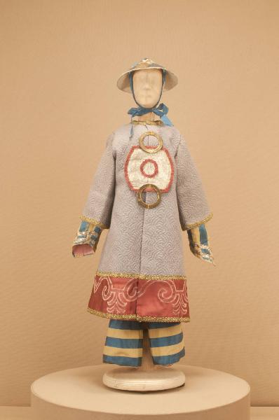 - NOTIZIE STORICO CRITICHE Il costume si completa con un paio di calzature in stile. La veste è stato rifatta nel 2001 utilizzando fodere, elementi decorativi e sezioni del vecchio manufatto datato 1948. Lo spettacolo "Il drago verde" è una grandiosa azione coreografica in nove quadri messa in scena da Carlo Colla per la Compagnia Marionettistica Carlo Colla e Figli. La musica è stata composta dai maestri Strigazzi e Gualtieri e le ricchissime scene sono state dipinte da A. Lualdi e L. Mens.\nLo spettacolo, in repertorio fin dalla metà dell¿Ottocento col titolo "I riti chinesi" e indicato sui libri mastri come "Ballo I Chinesi" e sui tamburini del quotidiano "La Sera" come Drago Verde (dal 1913 al 1918), fu rielaborato per un nuovo allestimento solo nel 1948 dopo un lungo oblio e presentato nuovamente sulle scene del Teatro Gerolamo di Milano. Lo spettacolo è stato ripreso nel 1985 al Teatro dell'Arte e portato a Berlino per il Festival Horizonte.\nContrariamente a quanto il titolo farebbe pensare non si tratta di un tema fiabesco, ma di un ballo a sfondo storico sulla lotta per il potere delle dinastie imperiali. Il drago a cui si allude nel titolo è un idolo che protegge la dinastia regnante e aiuta a sconfiggere ogni tentativo di rivolta della deposta dinastia.