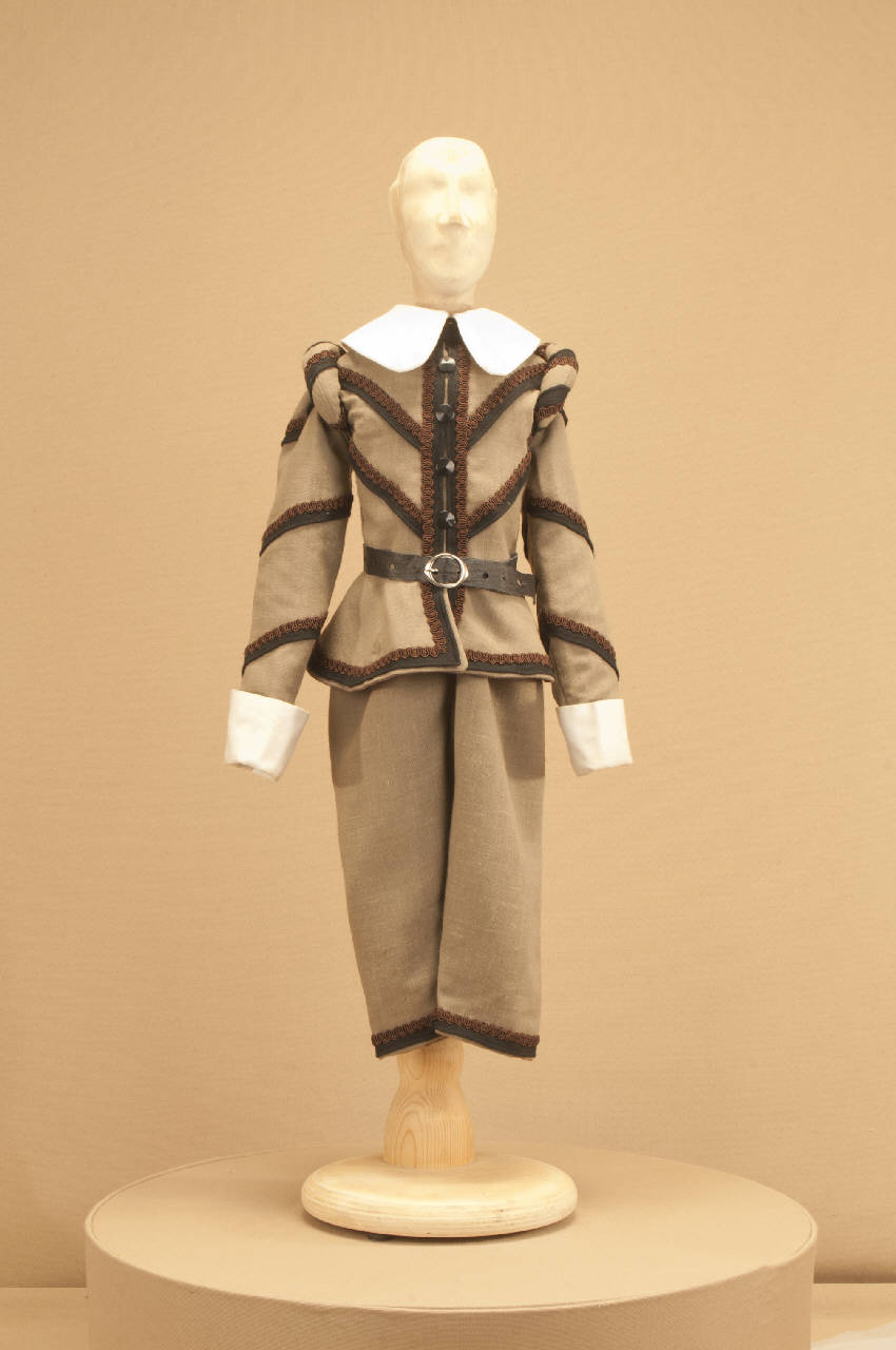 Costume da popolano di foggia seicentesca composto da calzoni, giacca, collo e cintura.