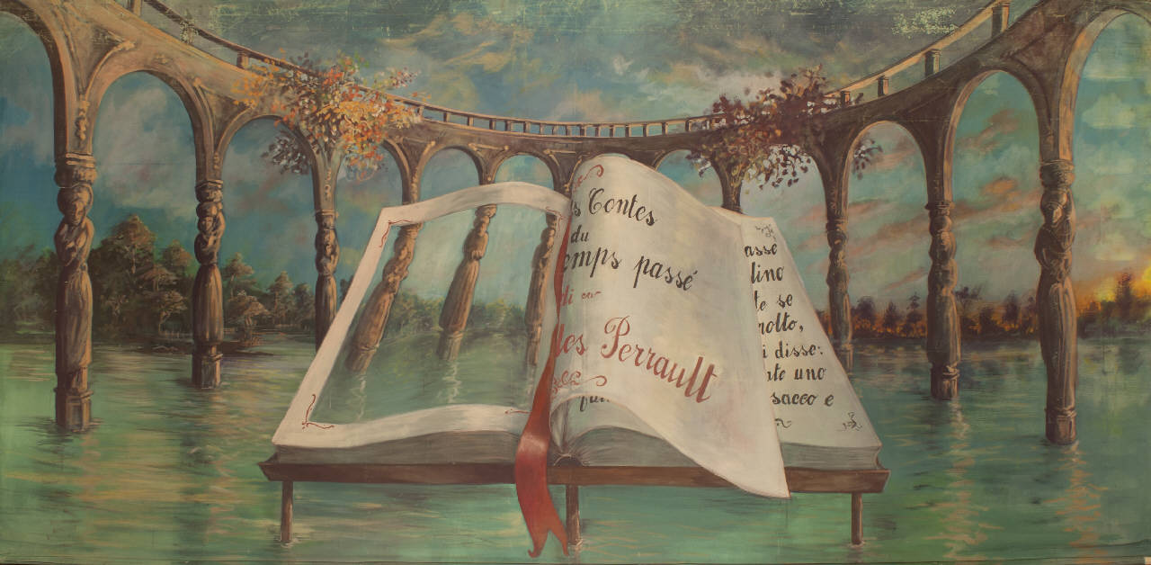 - NOTIZIE STORICO CRITICHE Il sipario è stato realizzato in occasione del riallestimento dello spettacolo nel 1987. "Il gatto con gli stivali"è una fiaba con struttura di operetta messa in scena nel 1911 da Carlo II Colla per la Compagnia Carlo Colla e Figli. Il manoscritto proviene dalla Compagnia Lupi che agiva al Teatro Gianduia di Torino: lo attesta una dicitura riportata sul retro della copertina. L¿edizione marionettistica della Compagnia Carlo Colla presenta nella forma della féerie (parti recitate alternate alle parti cantate e alle parti musicate) la celebre fiaba di Charles Perrault. La messa in scena risente del gusto dell'epoca verista dell'operetta e ricalca con notevole perizia i temi della nostra tradizione popolare. La musica del maestro Felice Camesasca sottolinea lo spettacolo in modo sovente ironico e sorprendente; le scene sono dello scenografo Achille Lualdi (1869-anni ¿50).\nIntervengono inoltre nello spettacolo, intuizioni culturali come il richiamo al mondo degli animali di La Fontane nel gioco teatrale del capovolgimento fra animale ed essere umano.\n"Il gatto con gli stivali" è una delle prime fiabe ad entrare nel repertorio della Compagnia Carlo Colla e Figli.\nNegli anni ¿20 alcuni costumi vengono sostituiti con abiti realizzati da Caramba. Nel 1946 viene realizzato dalla casa di produzione "Saturnia"un cortometraggio, per la regia di Mario Baffico (1907-1972). Nel 1973, in occasione delle riprese televisive prodotte dalla RAI per la trasmissione "Marionette e Burattini"con la regia di Eugenio Giacobino al Teatro Litta, Eugenio Monti Colla provvede al restauro di numerosi costumi. Nel 1987, per il riallestimento dello spettacolo al Teatro Litta, nell¿ambito della collaborazione con il "CRT Artificio"(1986-1994), vengono realizzati nuovi costumi, nuove marionette e nuovi materiali di attrezzeria.