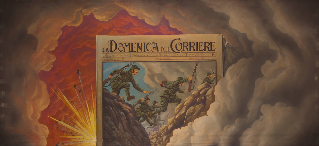 - NOTIZIE STORICO CRITICHE Il sipario è stato realizzato appositamente nel 2015, in occasione del centenario dell'inizio del primo conflitto mondiale per il quale è stato ripreso lo spettacolo. Il ballo "Excelsior"fu rappresentato la prima volta a Milano, al Teatro alla Scala, la sera dell'11 gennaio 1881. Autore del libretto e della coreografia era Luigi Manzotti, mentre Romualdo Marengo lo era della musica e Alfredo Edel delle scene e dei costumi.\nIl successo del ballo fu travolgente. Le repliche furono 103 nella stagione.\nLa versione marionettistica per la Compagnia Carlo Colla e Figli in due tempi e undici quadri fu allestita da Carlo II Colla col consenso dell¿autore e presentata col titolo di "Civiltà e Progresso"nel 1895. Il titolo mutò poi nel tempo. Il primo allestimento del ballo ricordava ancora troppo l'originale scaligero. Ma fu sufficiente che lo spettacolo entrasse nella routine degli spostamenti della Compagnia perché le peculiarità del teatro marionettistico diventassero preponderanti.\nCosì l'"Excelsior" approdò al Teatro Gerolamo di Milano, quando la Compagnia ci entrò stabilmente nel 1906, proprio negli anni in cui, dopo qualche ultima apparizione, il "ballo grande" italiano, simbolico-narrativo sta tramontando sulle scene europee, divenendo unico retaggio del teatro delle marionette e, più particolarmente, della Compagnia Carlo Colla e Figli che ha continuato a riproporlo sino ad oggi, offrendo al pubblico di un secolo dopo la più vivida testimonianza del kolossal scaligero.