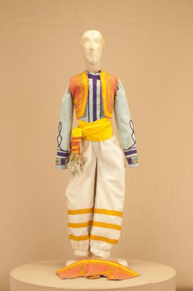 Costume per popolano di foggia orientale composto da pantaloni, corpino, bolero, fusciacca e uose.