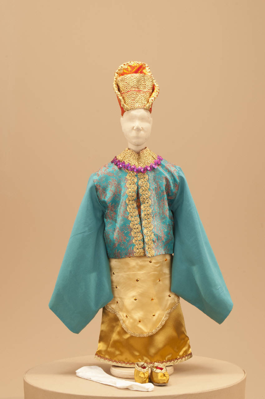 Costume cinese composto da veste, corpino, giacca, cintura,colletto, scarpe e calze.Si completa con cappello che ha il codice GOR17847.